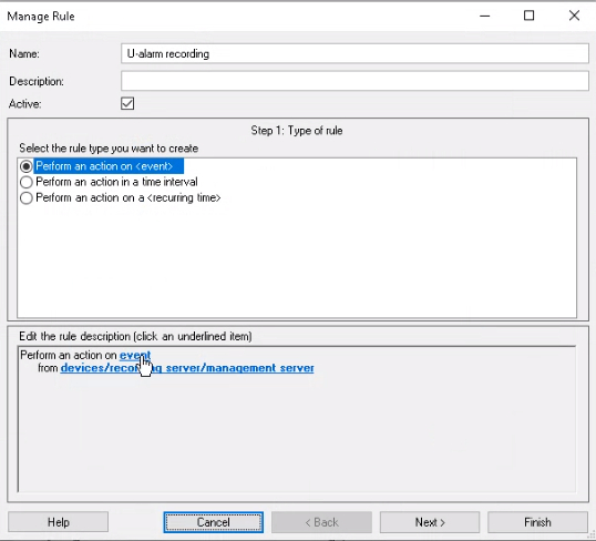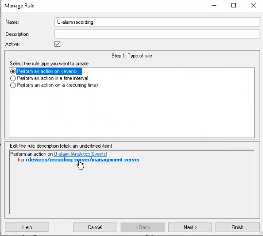 Now an Alarm needs to be configured in Milestone XProtect.