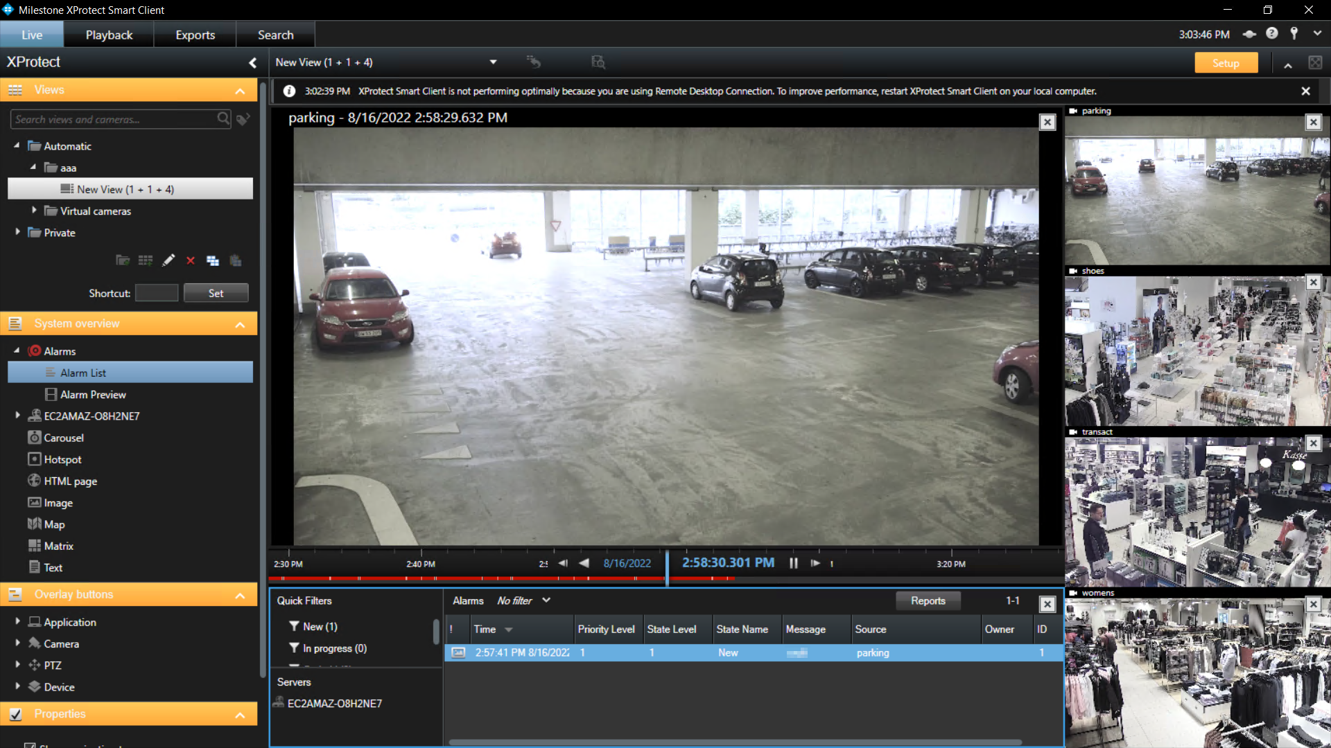 - In the Milestone XProtect Smart Client, open the LIVE tab of the window.